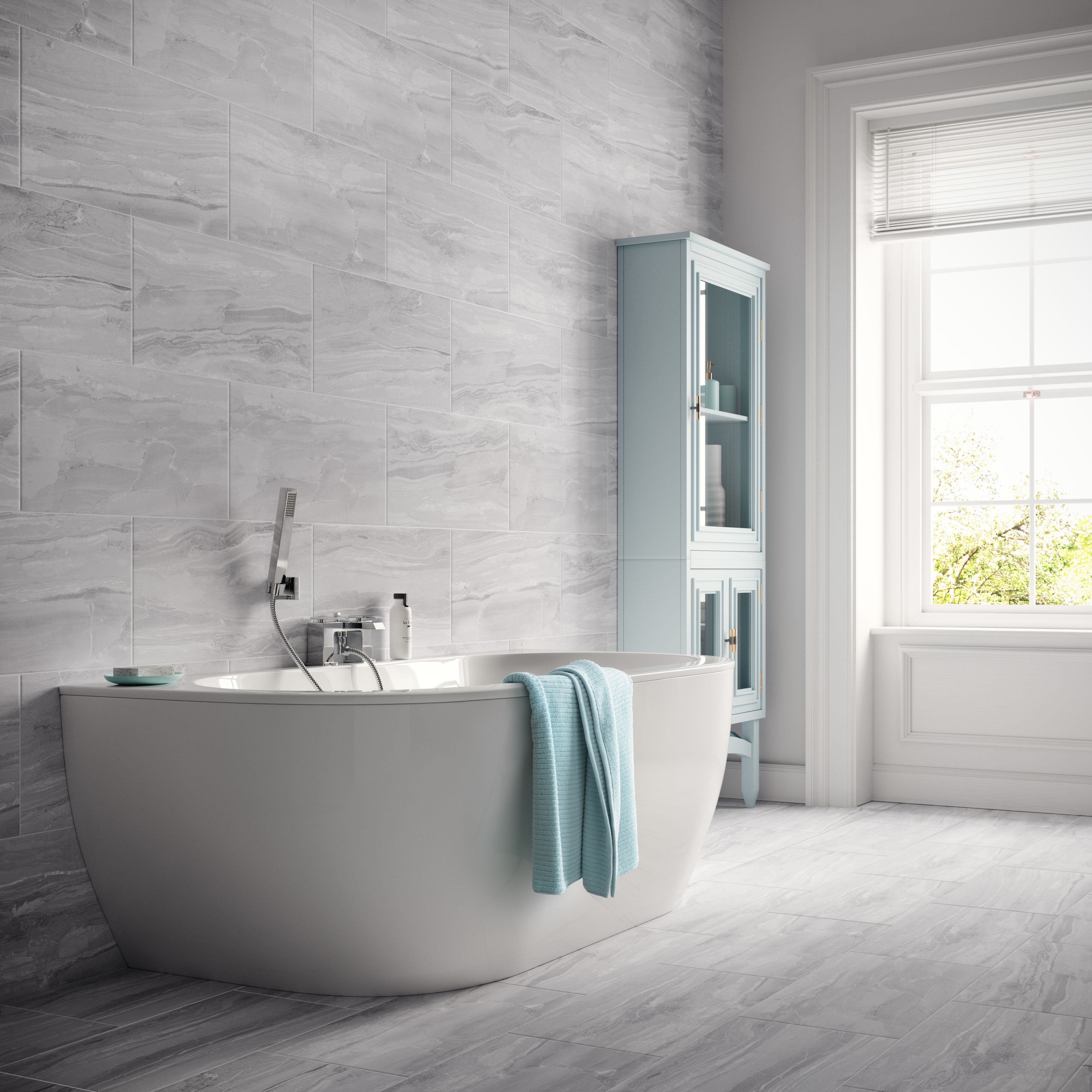 Fossilised wood Silver Stone effect Ceramic Wall & floor